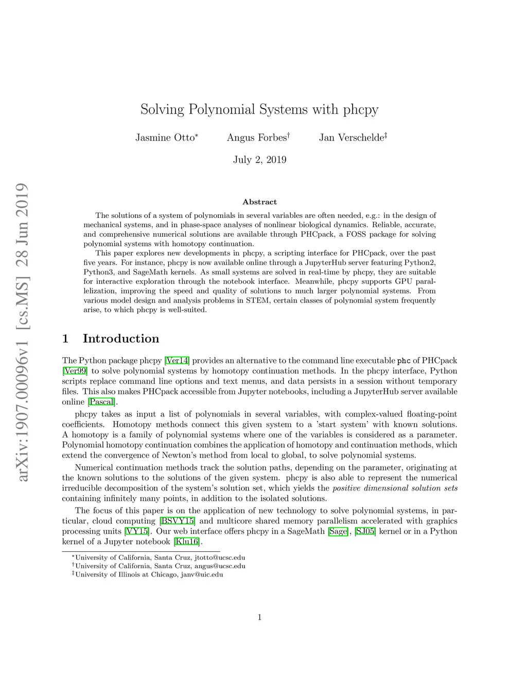 The solutions of a system of polynomials in several variables are often needed, e.g.: in the design of mechanical systems, and in phase-space analyses of nonlinear biological dynamics. Reliable, accurate, and comprehensive numerical solutions are available through PHCpack, a FOSS package for solving polynomial systems with homotopy continuation. This paper explores new developments in phcpy, a scripting interface for PHCpack, over the past five years. For instance, phcpy is now available online through a JupyterHub server featuring Python2, Python3, and SageMath kernels. As small systems are solved in real-time by phcpy, they are suitable for interactive exploration through the notebook interface. Meanwhile, phcpy supports GPU parallelization, improving the speed and quality of solutions to much larger polynomial systems. From various model design and analysis problems in STEM, certain classes of polynomial system frequently arise, to which phcpy is well-suited.