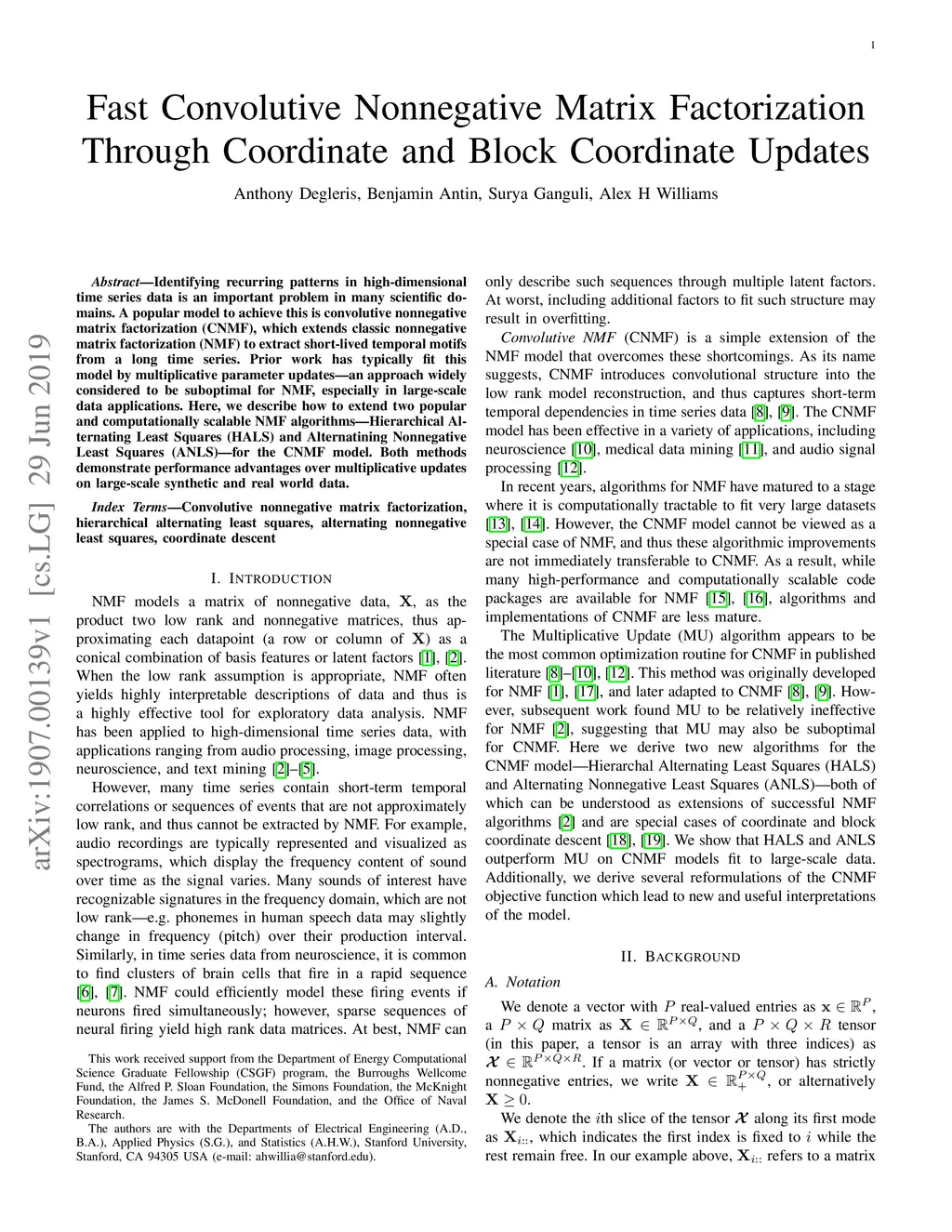 Fast Convolutive Nonnegative Matrix Factorization Through Coordinate and