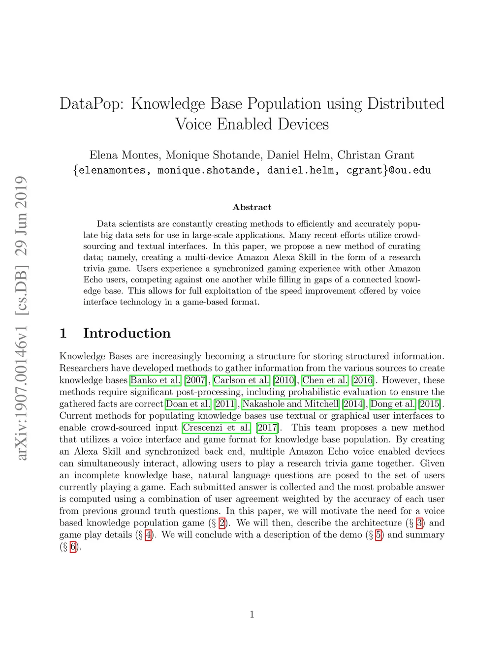DataPop: Knowledge Base Population using Distributed Voice Enabled