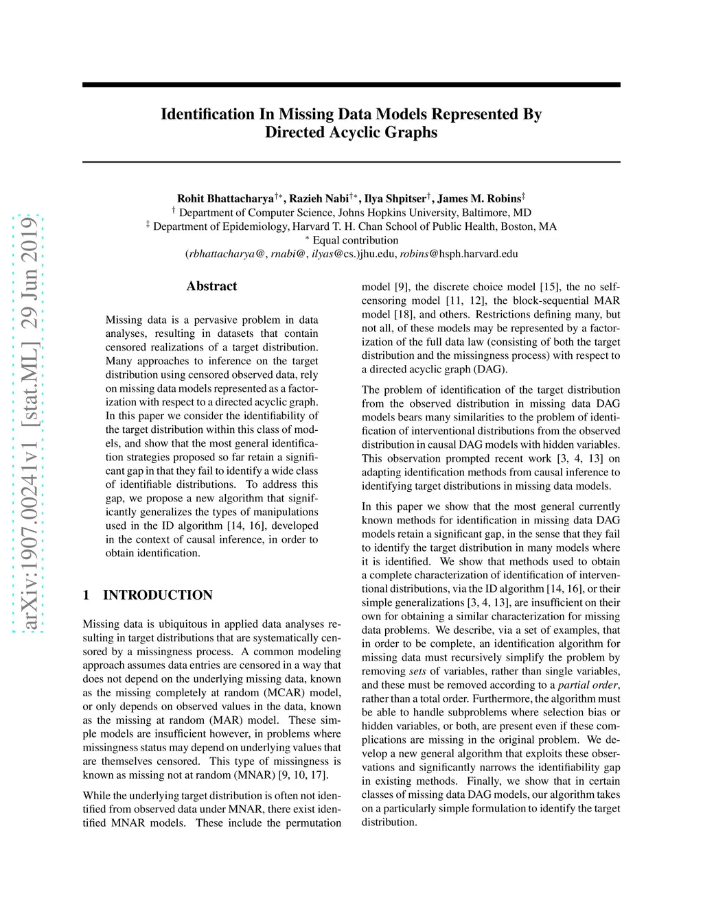 Identification In Missing Data Models Represented By Directed Acyclic