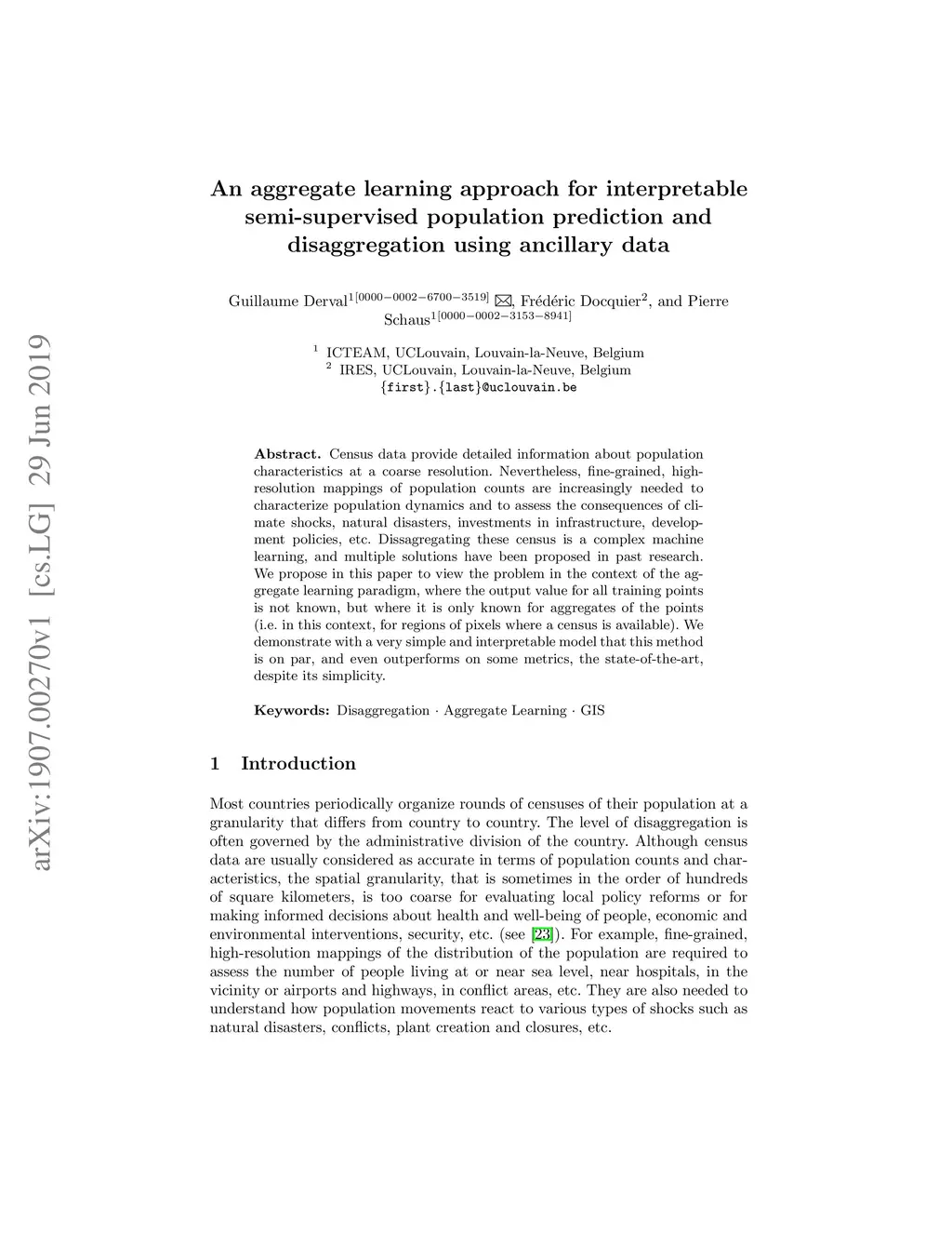Census data provide detailed information about population characteristics at a coarse resolution. Nevertheless, fine-grained, high-resolution mappings of population counts are increasingly needed to characterize population dynamics and to assess the consequences of climate shocks, natural disasters, investments in infrastructure, development policies, etc. Dissagregating these census is a complex machine learning, and multiple solutions have been proposed in past research. We propose in this paper to view the problem in the context of the aggregate learning paradigm, where the output value for all training points is not known, but where it is only known for aggregates of the points (i.e. in this context, for regions of pixels where a census is available). We demonstrate with a very simple and interpretable model that this method is on par, and even outperforms on some metrics, the state-of-the-art, despite its simplicity.