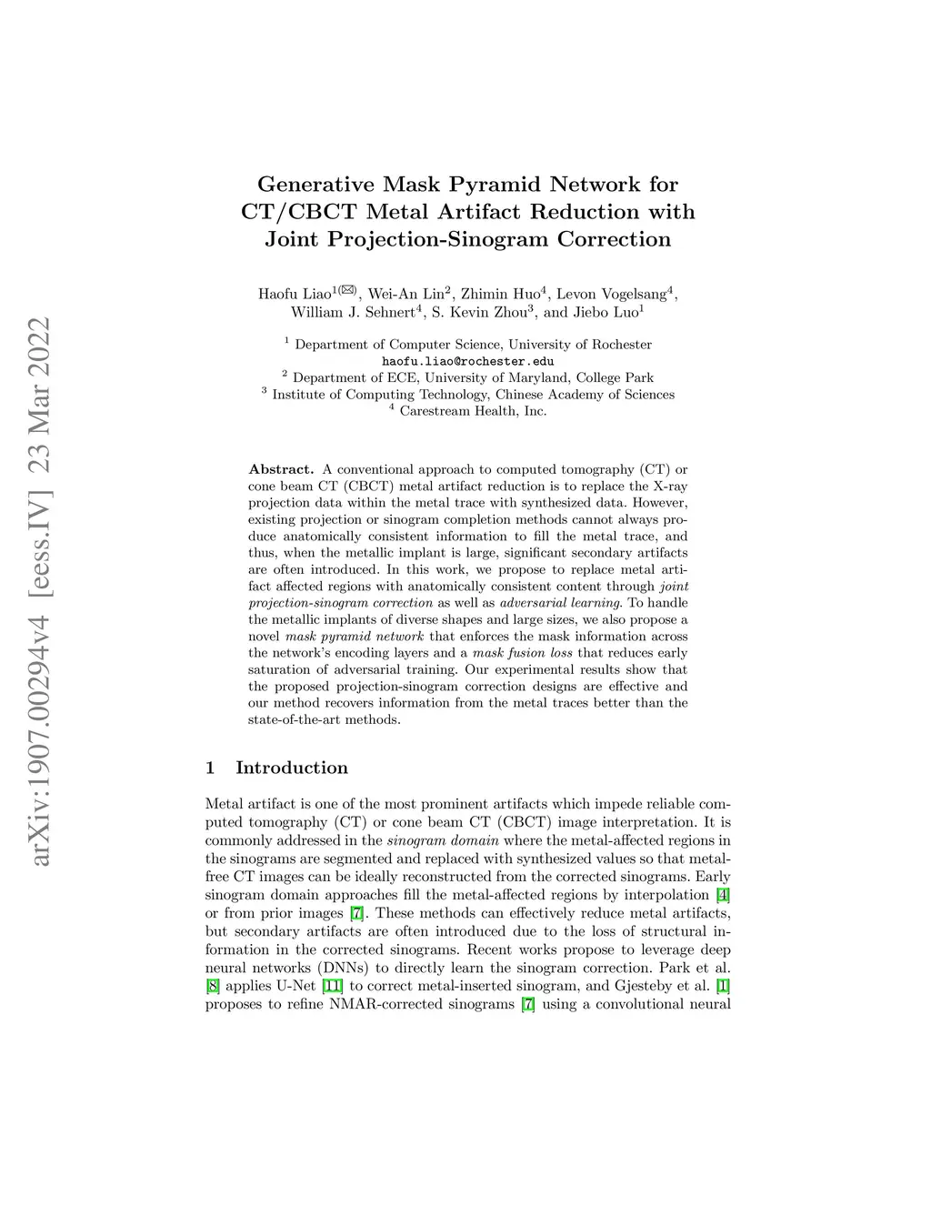 Generative Mask Pyramid Network for CT/CBCT Metal Artifact Reduction