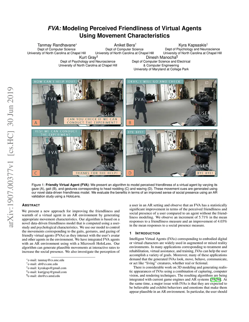 FVA: Modeling Perceived Friendliness of Virtual Agents Using Movement