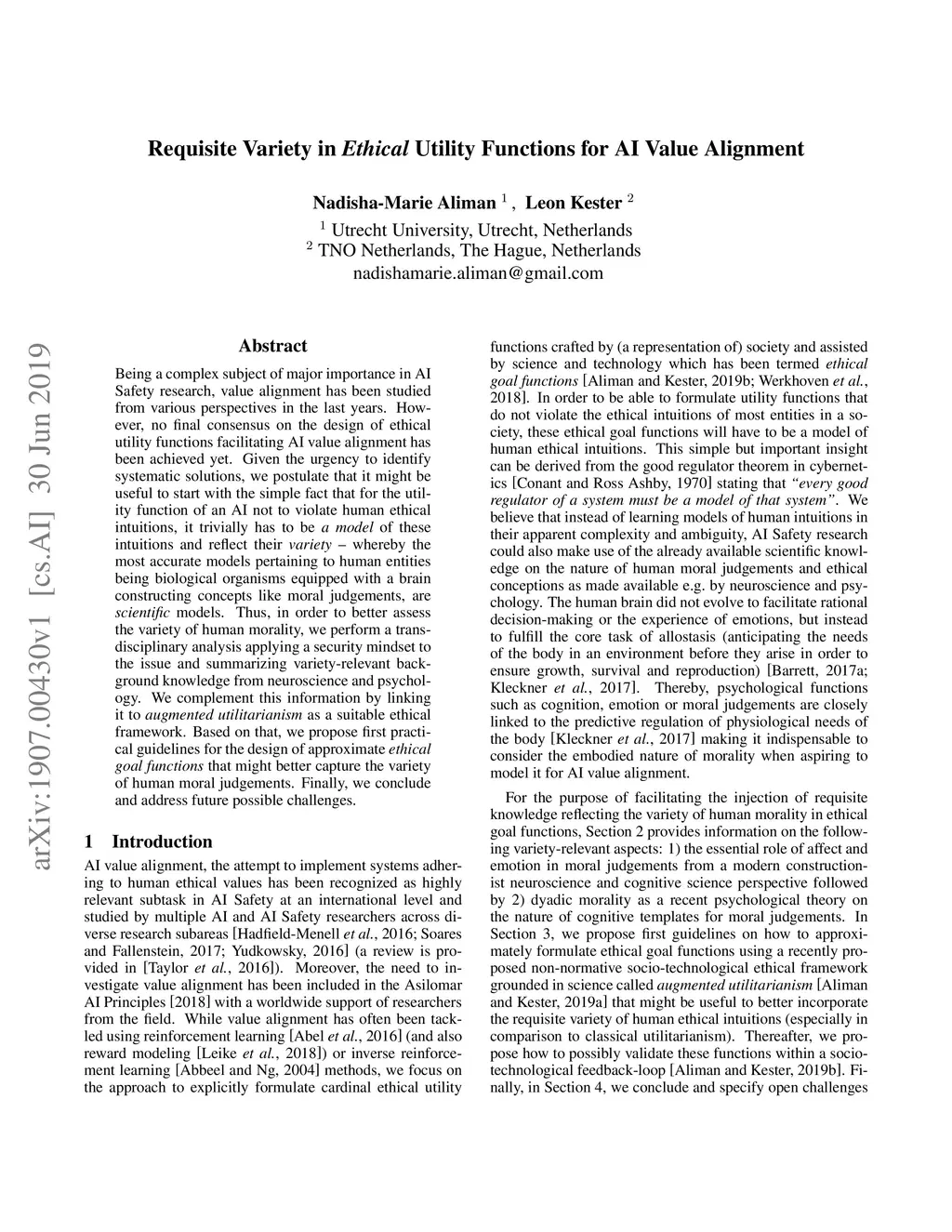 Requisite Variety in Ethical Utility Functions for AI Value Alignment