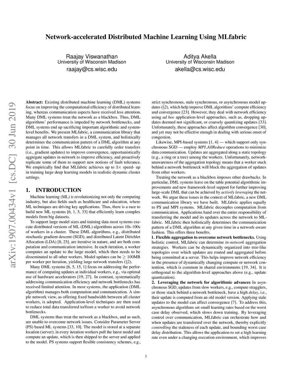 Network-accelerated Distributed Machine Learning Using MLFabric