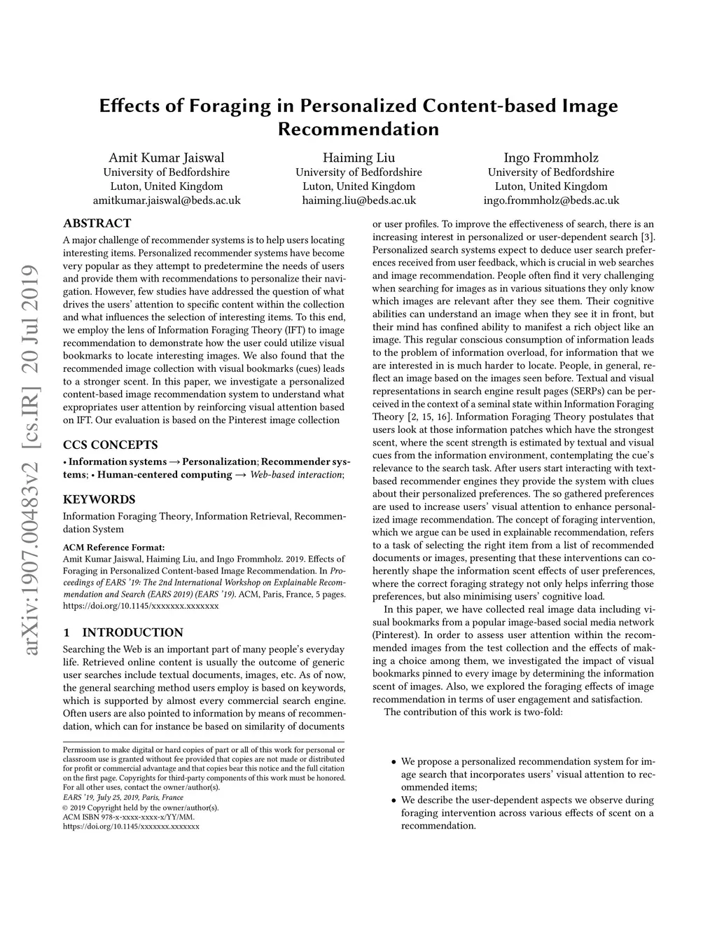 Effects of Foraging in Personalized Content-based Image Recommendation