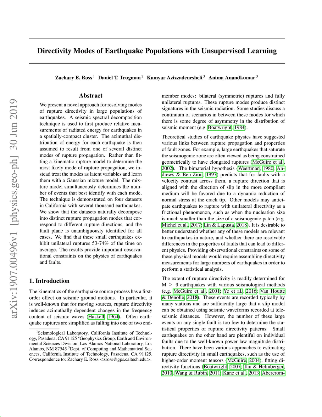 Directivity Modes of Earthquake Populations with Unsupervised Learning