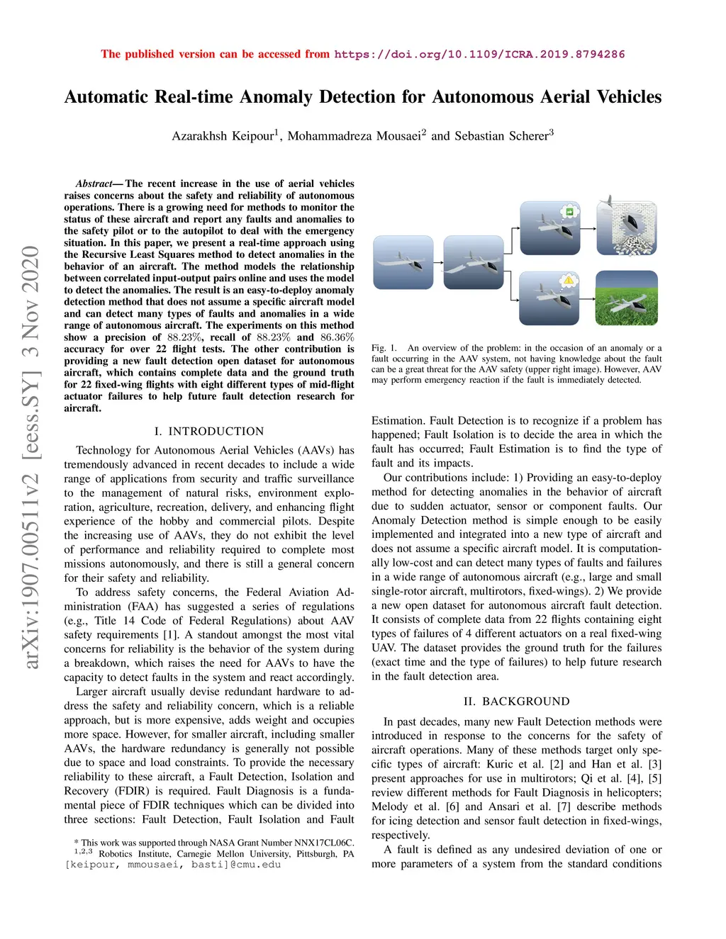 Automatic Real-time Anomaly Detection for Autonomous Aerial Vehicles