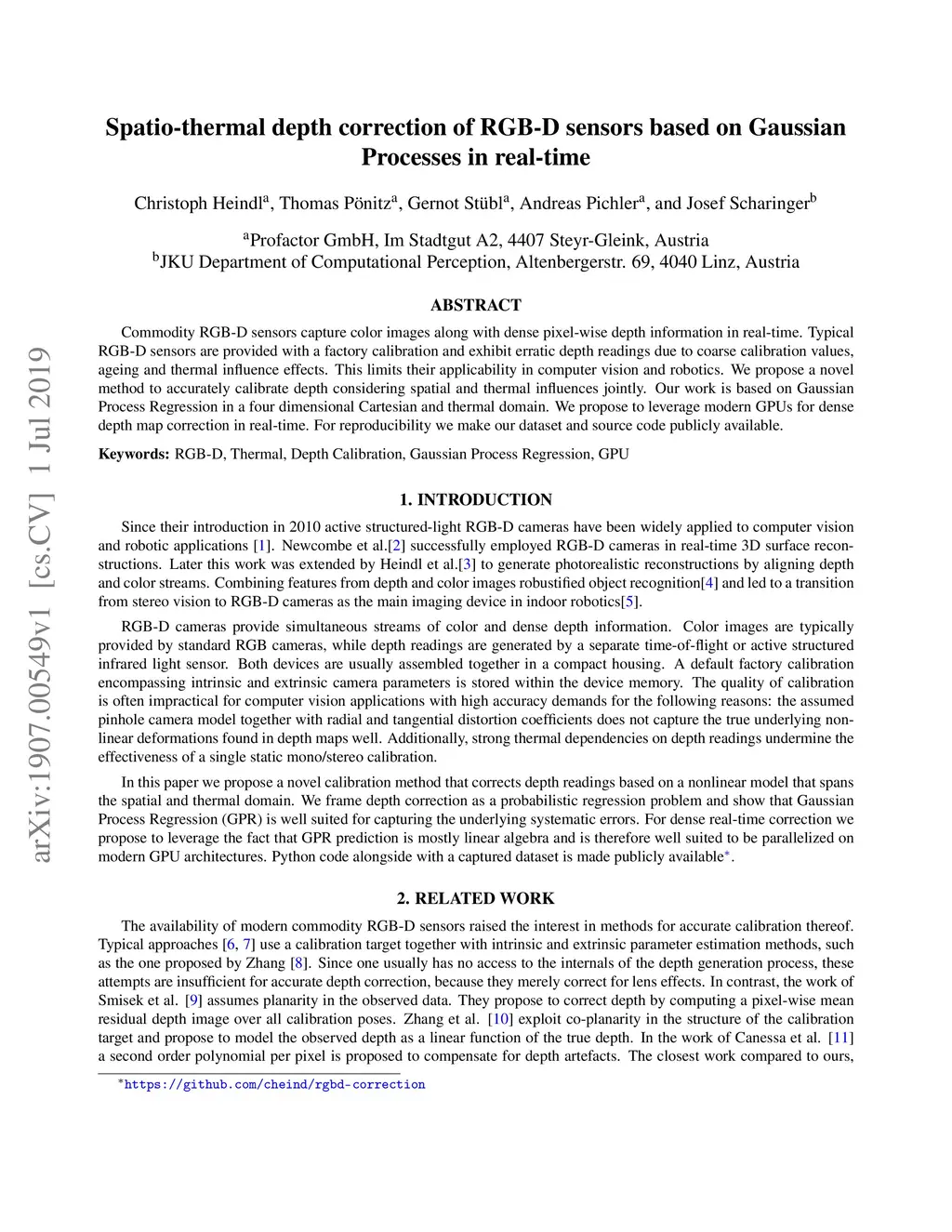 Spatio-thermal depth correction of RGB-D sensors based on Gaussian