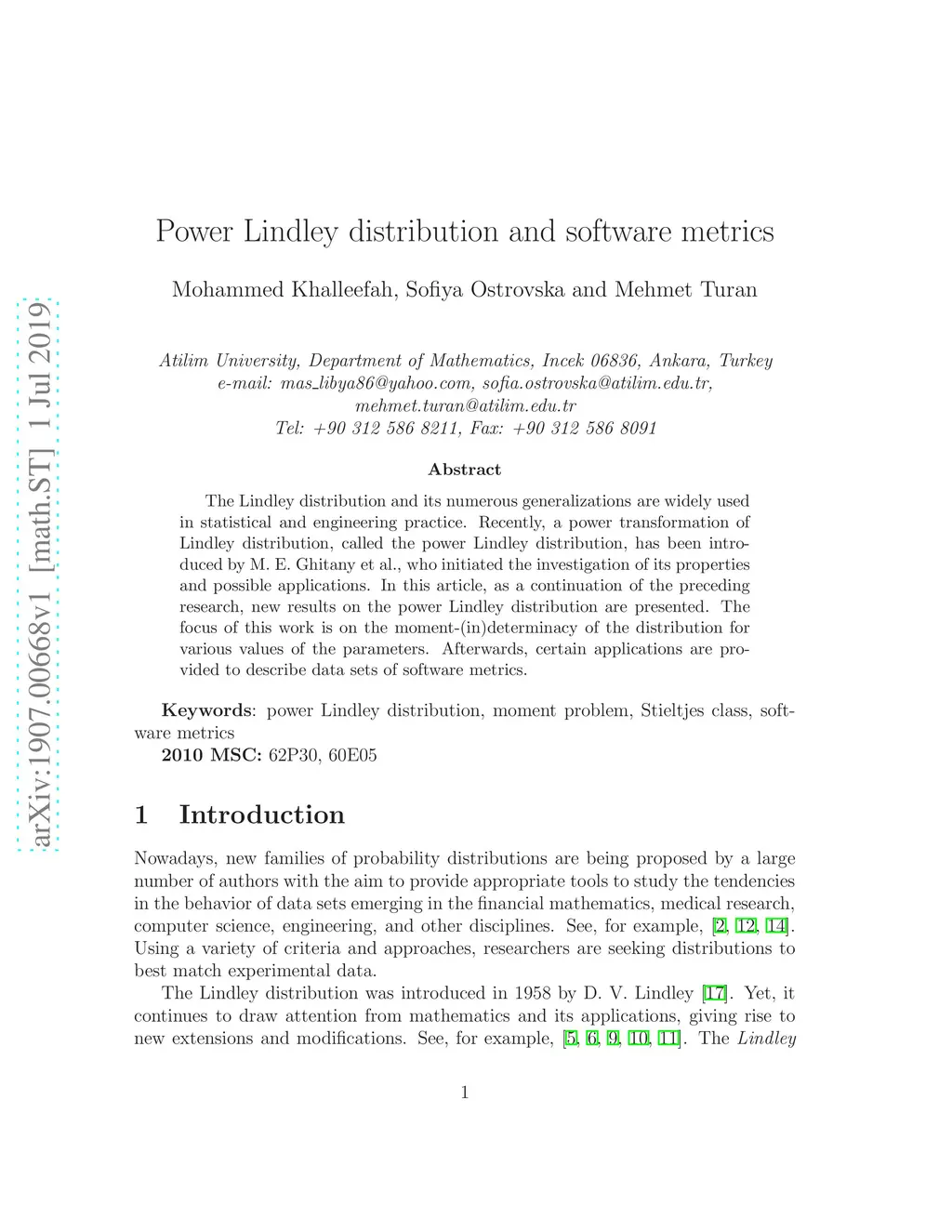 The Lindley distribution and its numerous generalizations are widely used in statistical and engineering practice. Recently, a power transformation of Lindley distribution, called the power Lindley distribution, has been introduced by M. E. Ghitany et al., who initiated the investigation of its properties and possible applications. In this article, new results on the power Lindley distribution are presented. The focus of this work is on the moment-(in)determinacy of the distribution for various values of the parameters. Afterwards, certain applications are provided to describe data sets of software metrics.