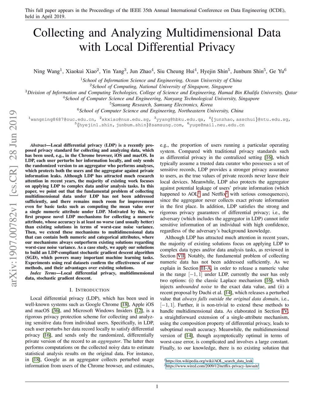 Collecting and Analyzing Multidimensional Data with Local Differential