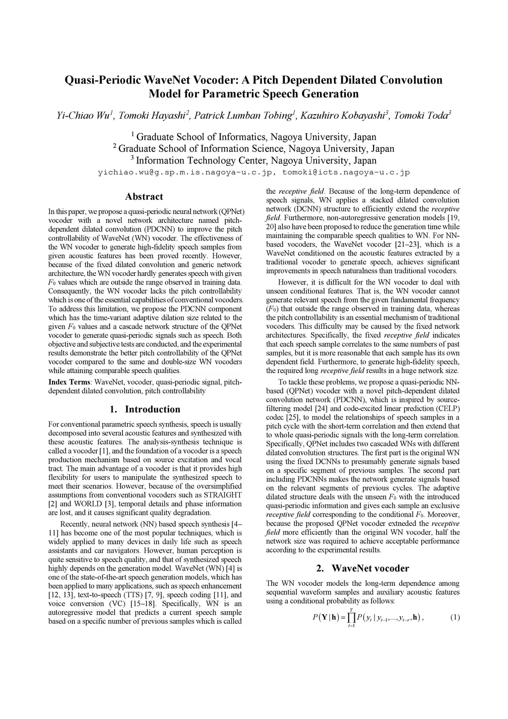 Quasi-Periodic WaveNet Vocoder: A Pitch Dependent Dilated Convolution