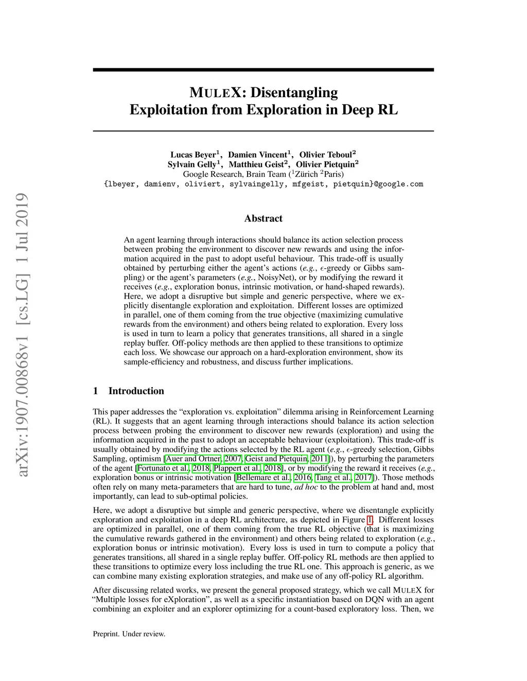 MULEX: Disentangling Exploitation from Exploration in Deep RL