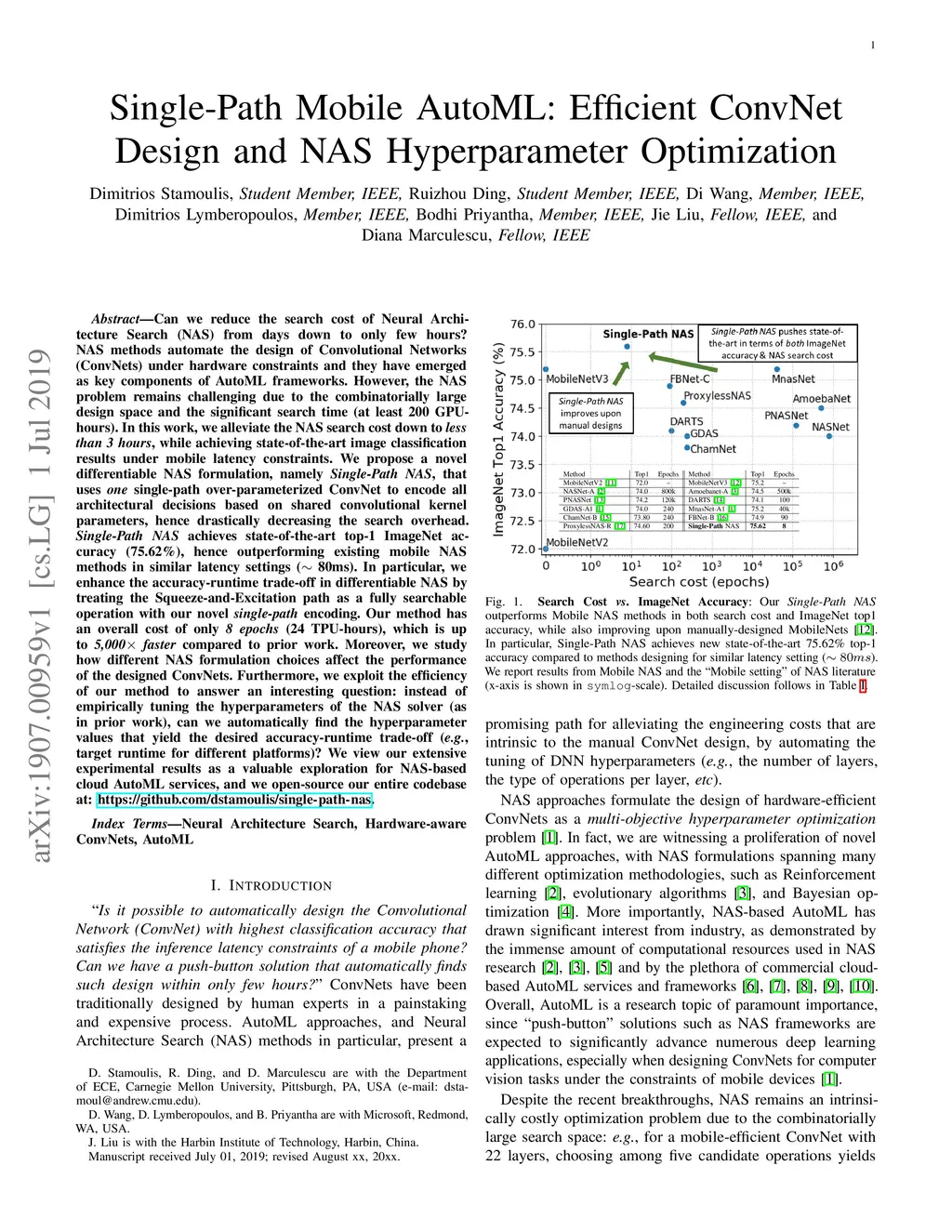 Single-Path Mobile AutoML: Efficient ConvNet Design and NAS