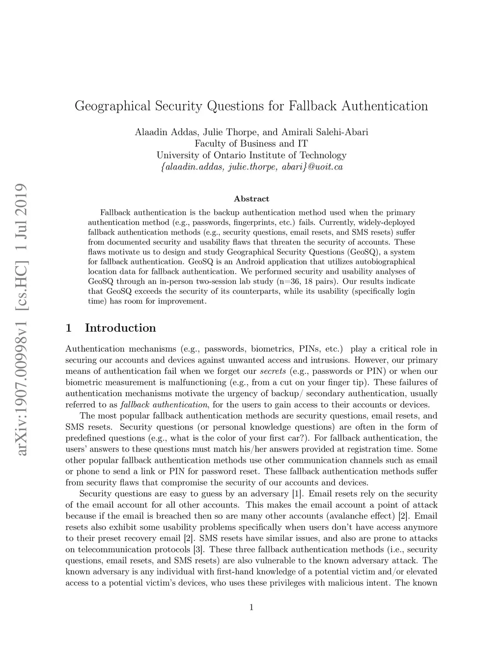 Geographical Security Questions for Fallback Authentication