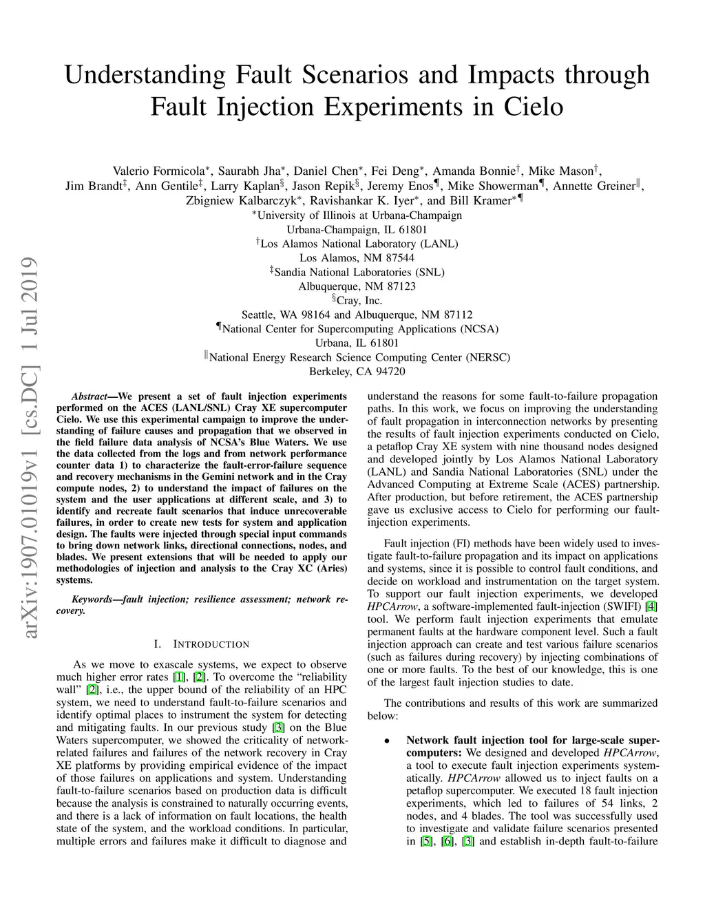 We present a set of fault injection experiments performed on the ACES (LANL/SNL) Cray XE supercomputer Cielo. We use this experimental campaign to improve the understanding of failure causes and propagation that we observed in the field failure data analysis of NCSA's Blue Waters. We use the data collected from the logs and from network performance counter data 1) to characterize the fault-error-failure sequence and recovery mechanisms in the Gemini network and in the Cray compute nodes, 2) to understand the impact of failures on the system and the user applications at different scale, and 3) to identify and recreate fault scenarios that induce unrecoverable failures, in order to create new tests for system and application design. The faults were injected through special input commands to bring down network links, directional connections, nodes, and blades. We present extensions that will be needed to apply our methodologies of injection and analysis to the Cray XC (Aries) systems.