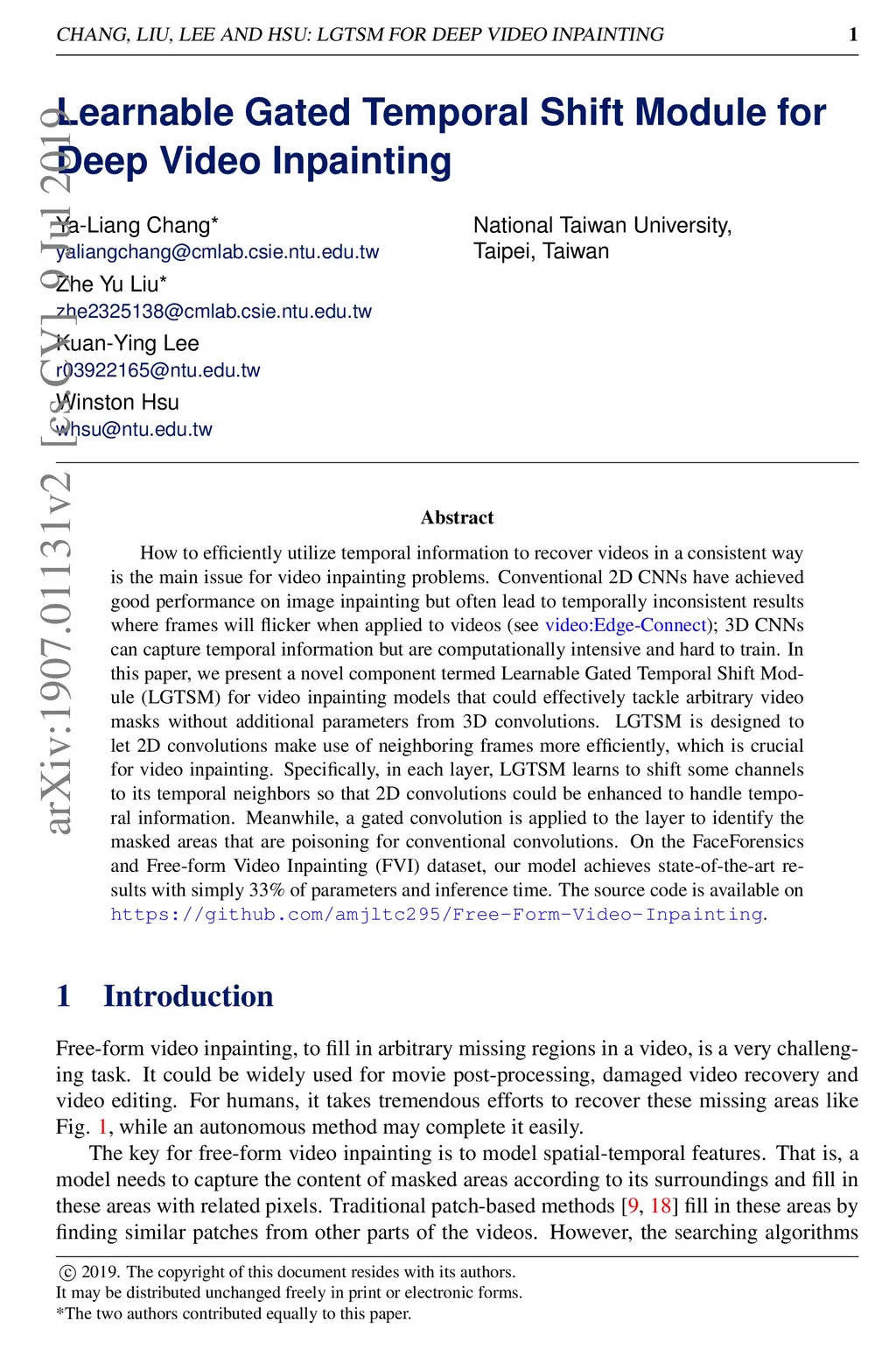 Learnable Gated Temporal Shift Module for Deep Video Inpainting