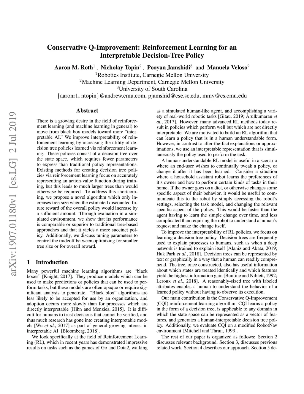 Conservative Q-Improvement: Reinforcement Learning for an Interpretable