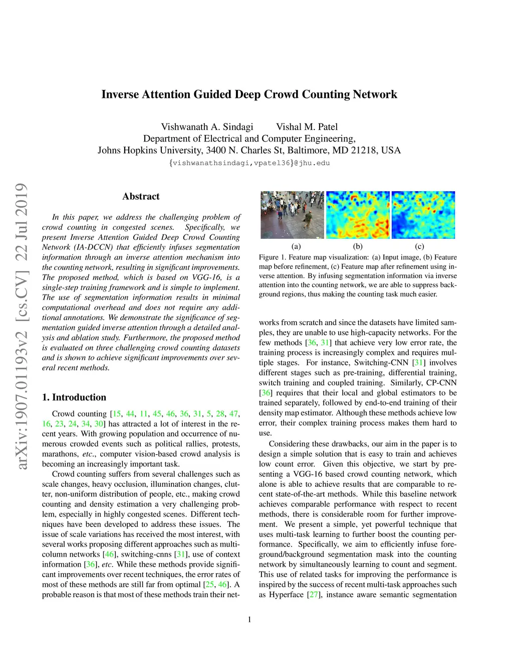 Inverse Attention Guided Deep Crowd Counting Network