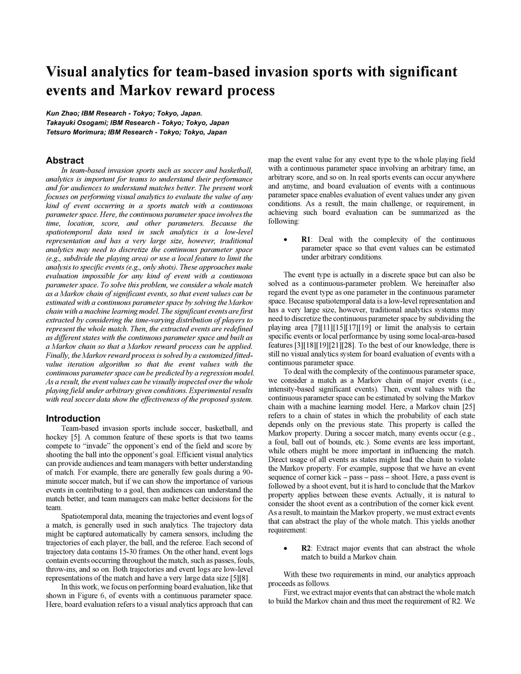 Visual analytics for team-based invasion sports with significant events