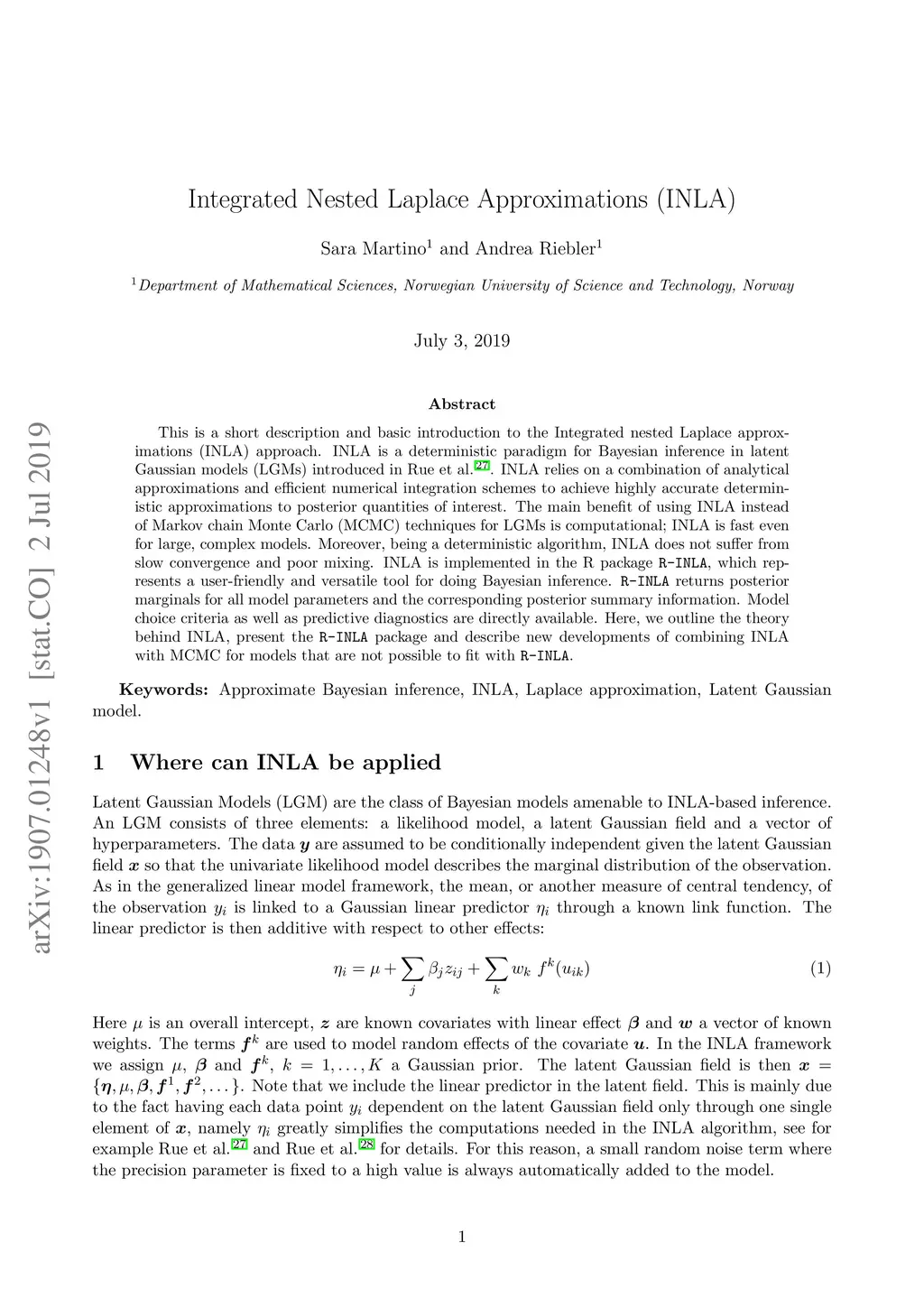 Integrated Nested Laplace Approximations (INLA)