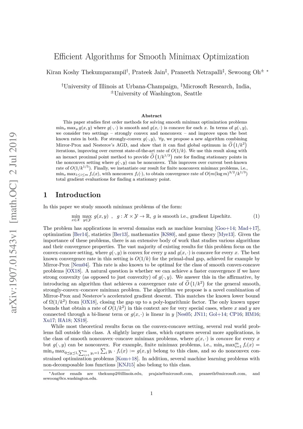 Efficient Algorithms for Smooth Minimax Optimization