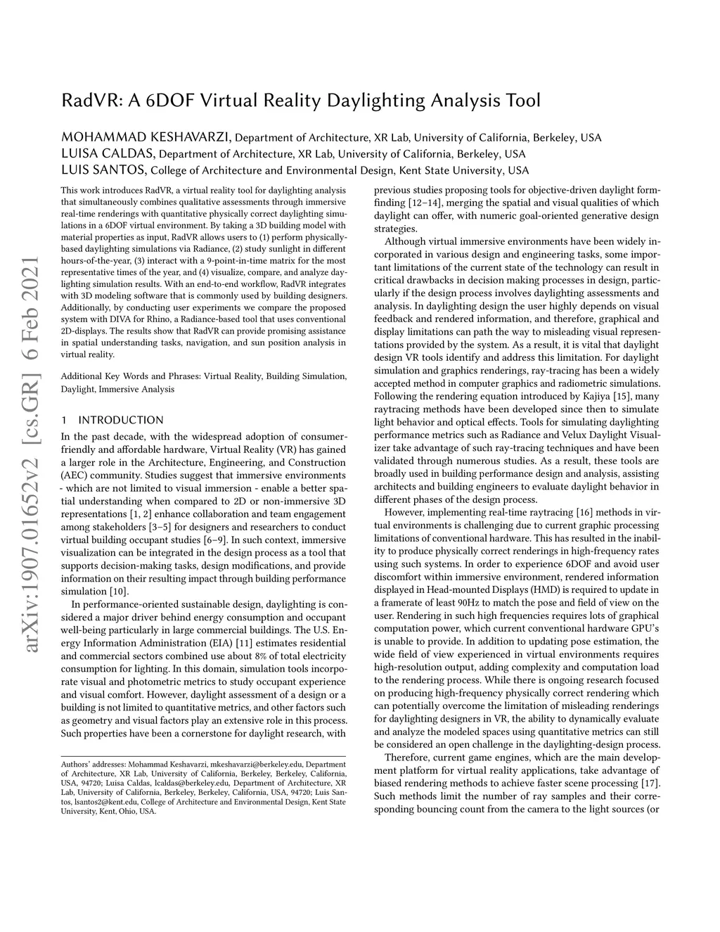 RadVR: A 6DOF Virtual Reality Daylighting Analysis Tool