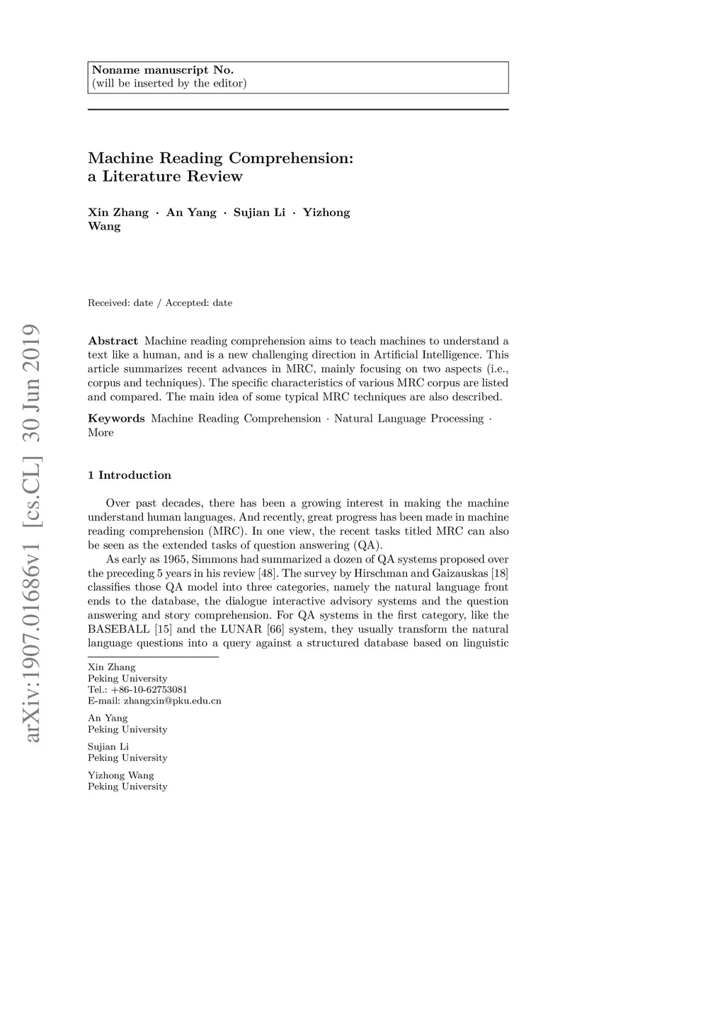 Machine Reading Comprehension: a Literature Review