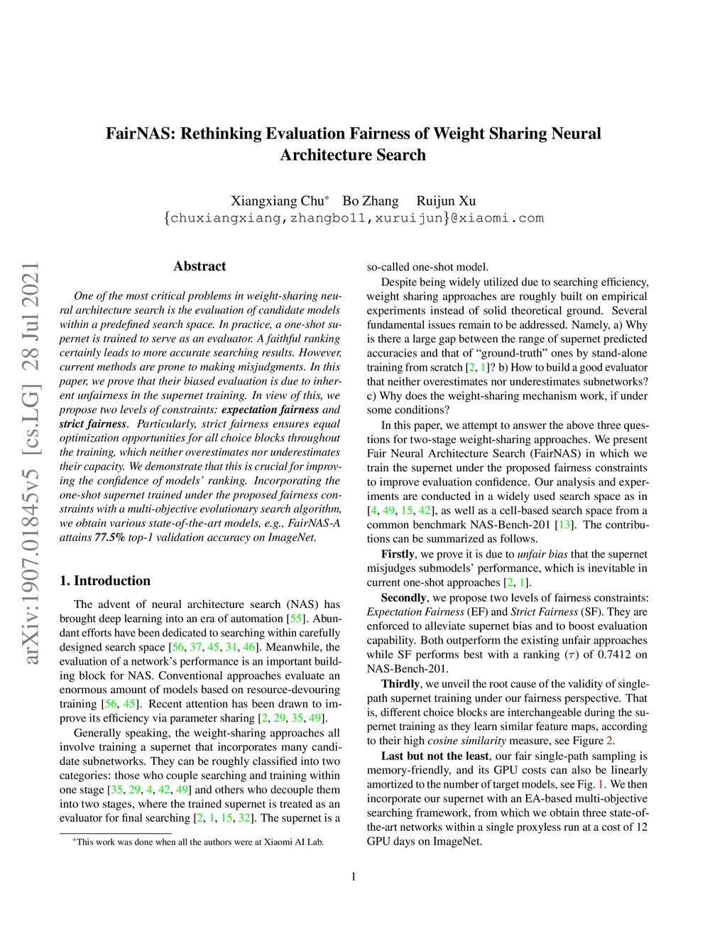 FairNAS: Rethinking Evaluation Fairness of Weight Sharing Neural