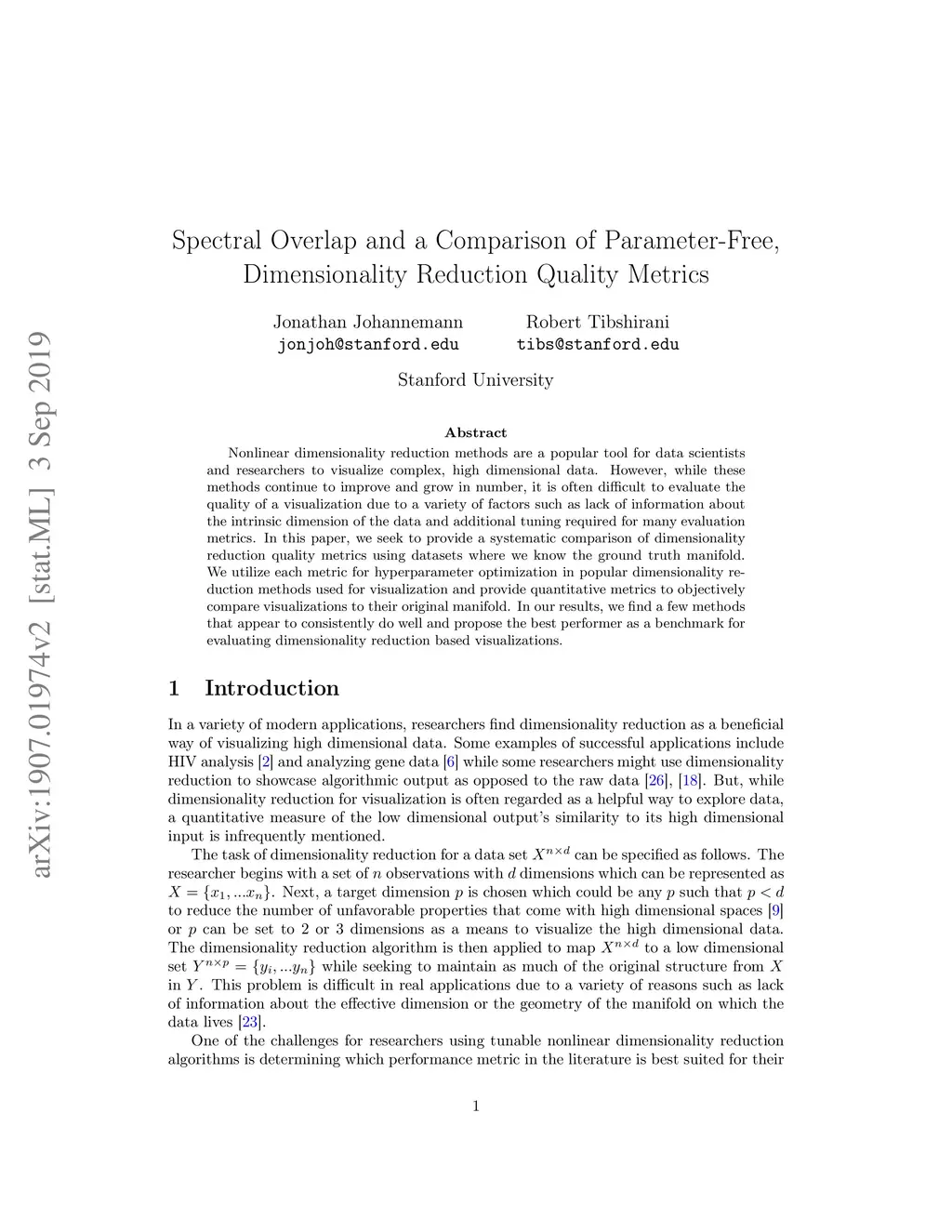 Spectral Overlap and a Comparison of Parameter-Free, Dimensionality