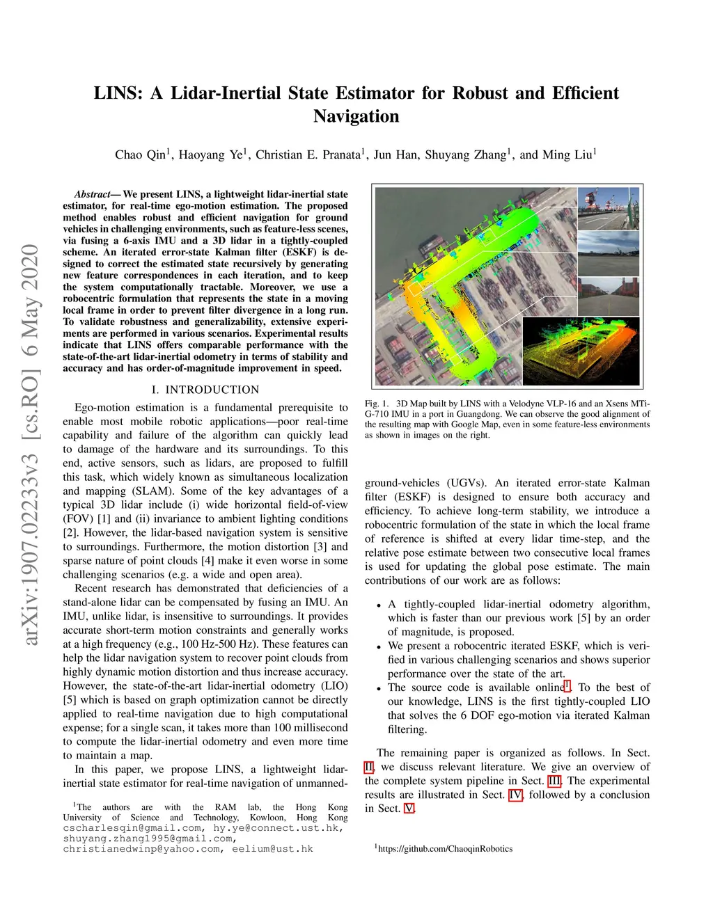 LINS: A Lidar-Inertial State Estimator for Robust and Efficient