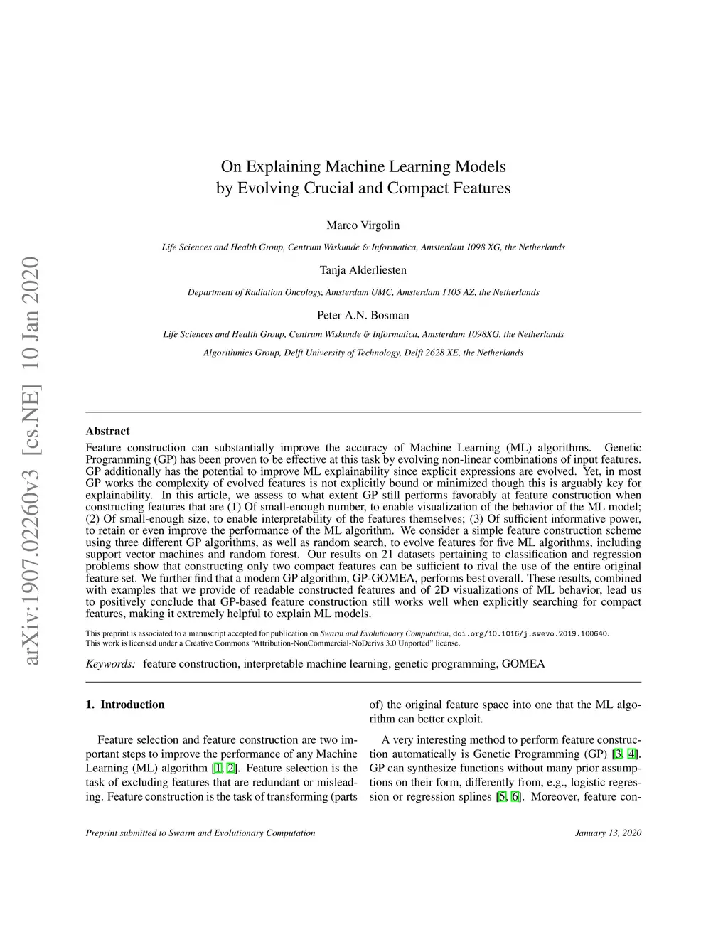 On Explaining Machine Learning Models by Evolving Crucial and Compact