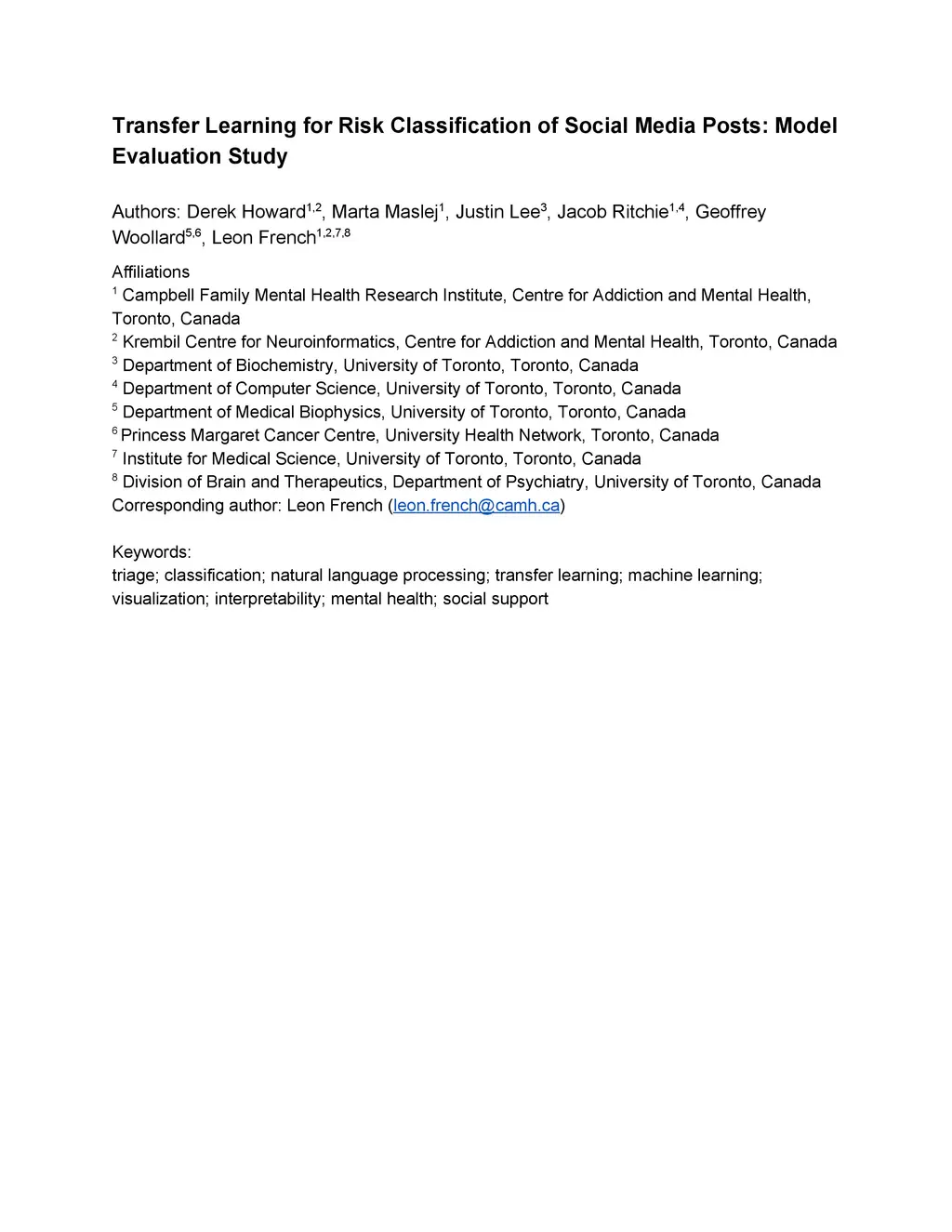 Transfer Learning for Risk Classification of Social Media Posts: Model