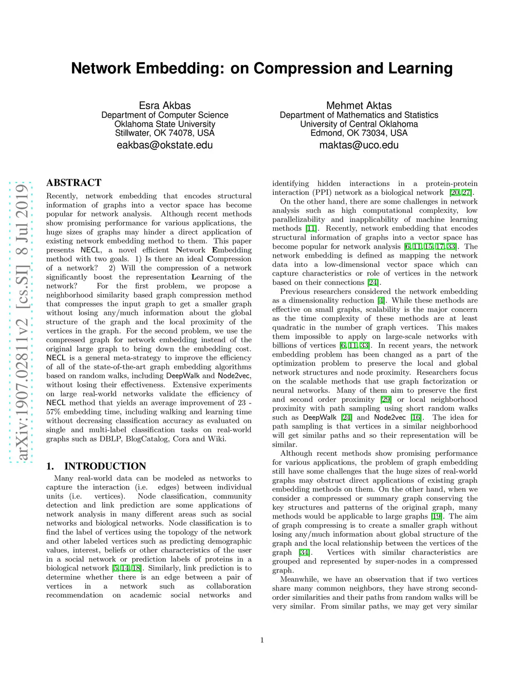Network Embedding: on Compression and Learning