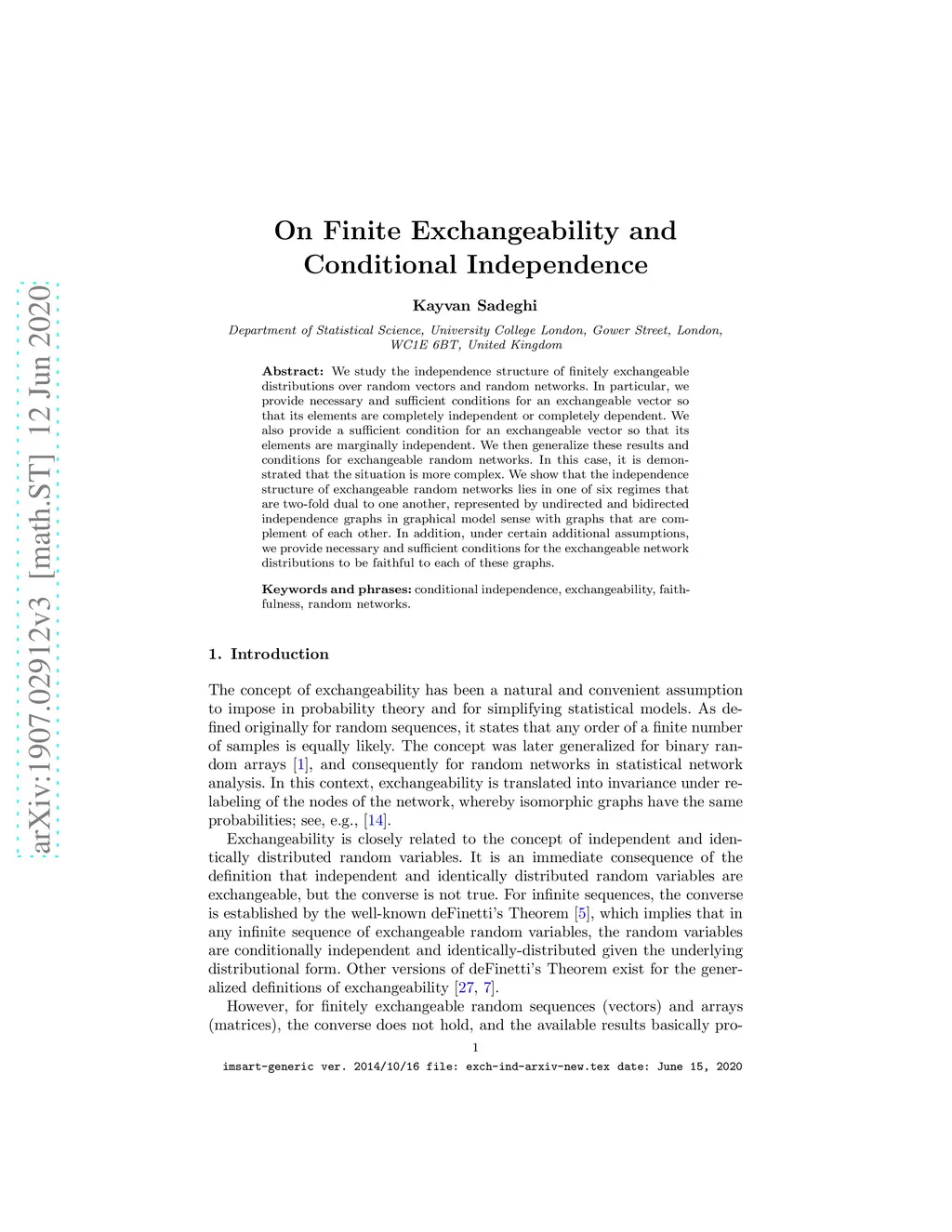 On Finite Exchangeability and Conditional Independence