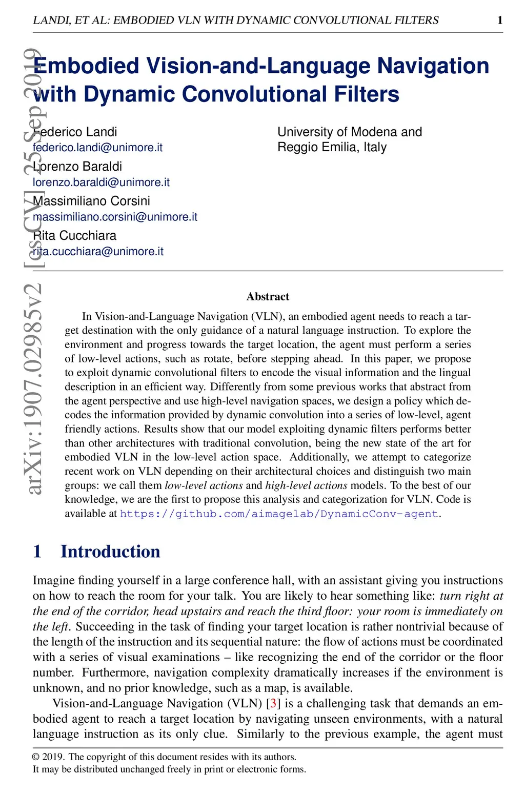 Embodied Vision-and-Language Navigation with Dynamic Convolutional