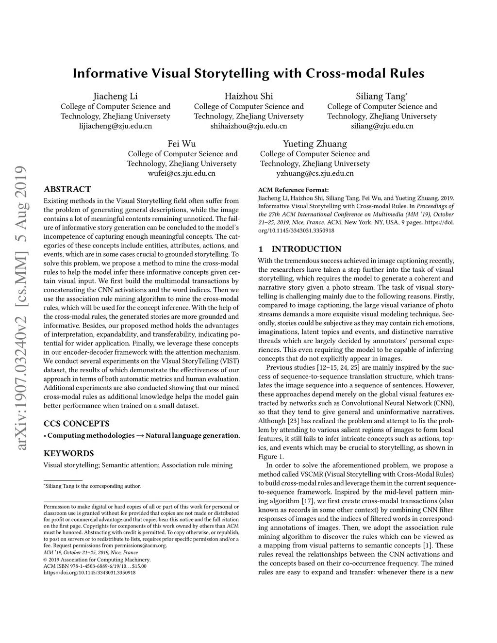 Existing methods in the Visual Storytelling field often suffer from the problem of generating general descriptions, while the image contains a lot of meaningful contents remaining unnoticed. The failure of informative story generation can be concluded to the model's incompetence of capturing enough meaningful concepts. The categories of these concepts include entities, attributes, actions, and events, which are in some cases crucial to grounded storytelling. To solve this problem, we propose a method to mine the cross-modal rules to help the model infer these informative concepts given certain visual input. We first build the multimodal transactions by concatenating the CNN activations and the word indices. Then we use the association rule mining algorithm to mine the cross-modal rules, which will be used for the concept inference. With the help of the cross-modal rules, the generated stories are more grounded and informative. Besides, our proposed method holds the advantages of interpretation, expandability, and transferability, indicating potential for wider application. Finally, we leverage these concepts in our encoder-decoder framework with the attention mechanism. We conduct several experiments on the VIsual StoryTelling~(VIST) dataset, the results of which demonstrate the effectiveness of our approach in terms of both automatic metrics and human evaluation. Additional experiments are also conducted showing that our mined cross-modal rules as additional knowledge helps the model gain better performance when trained on a small dataset.
