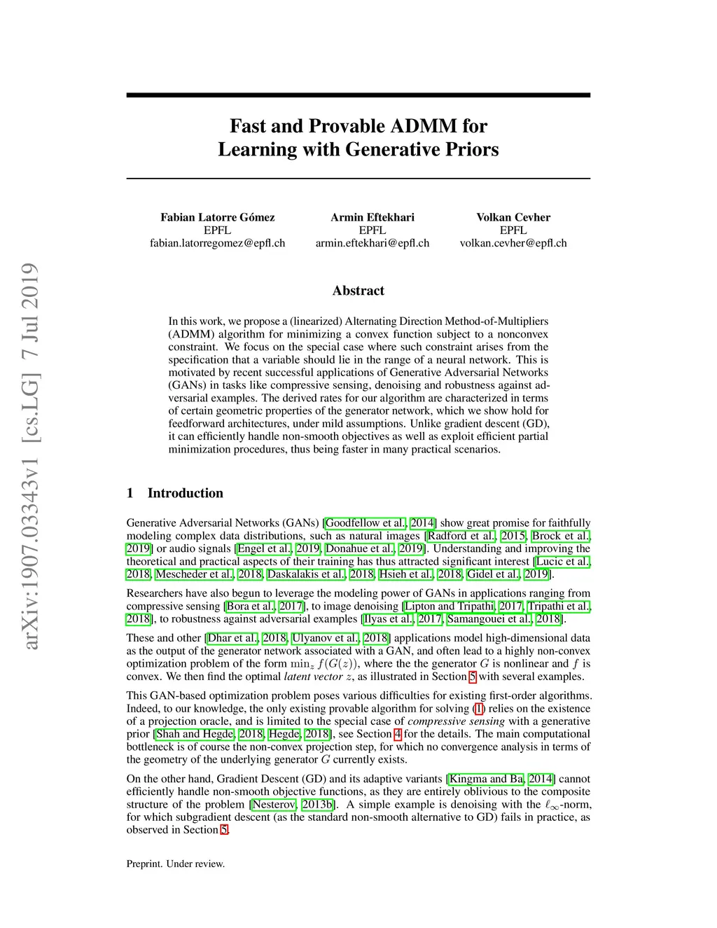 Fast and Provable ADMM for Learning with Generative Priors