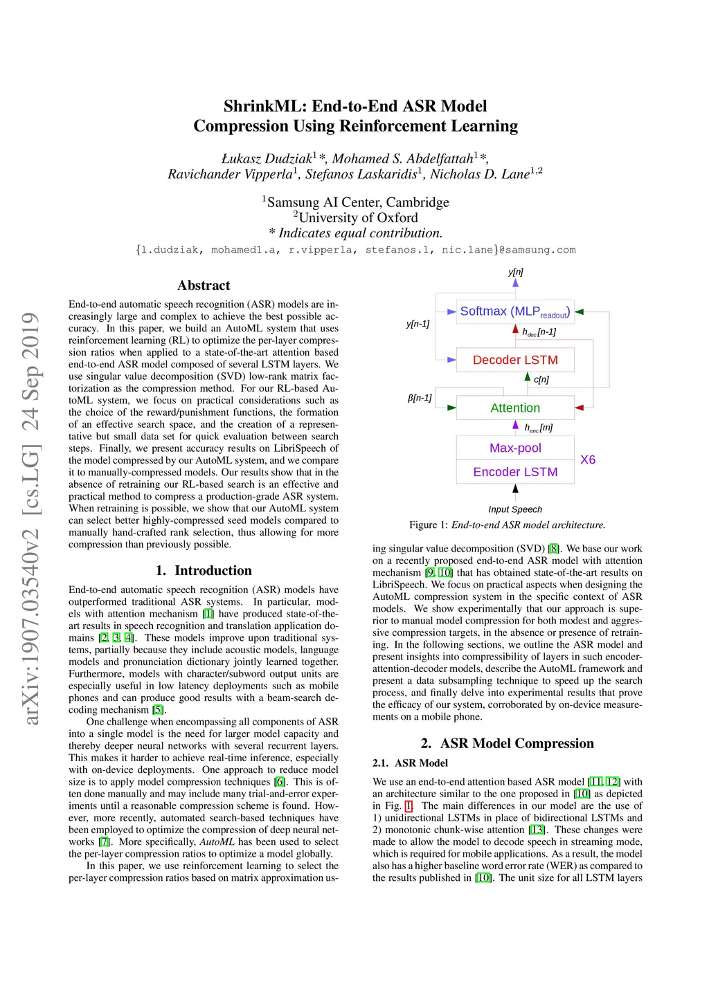 ShrinkML: End-to-End ASR Model Compression Using Reinforcement Learning