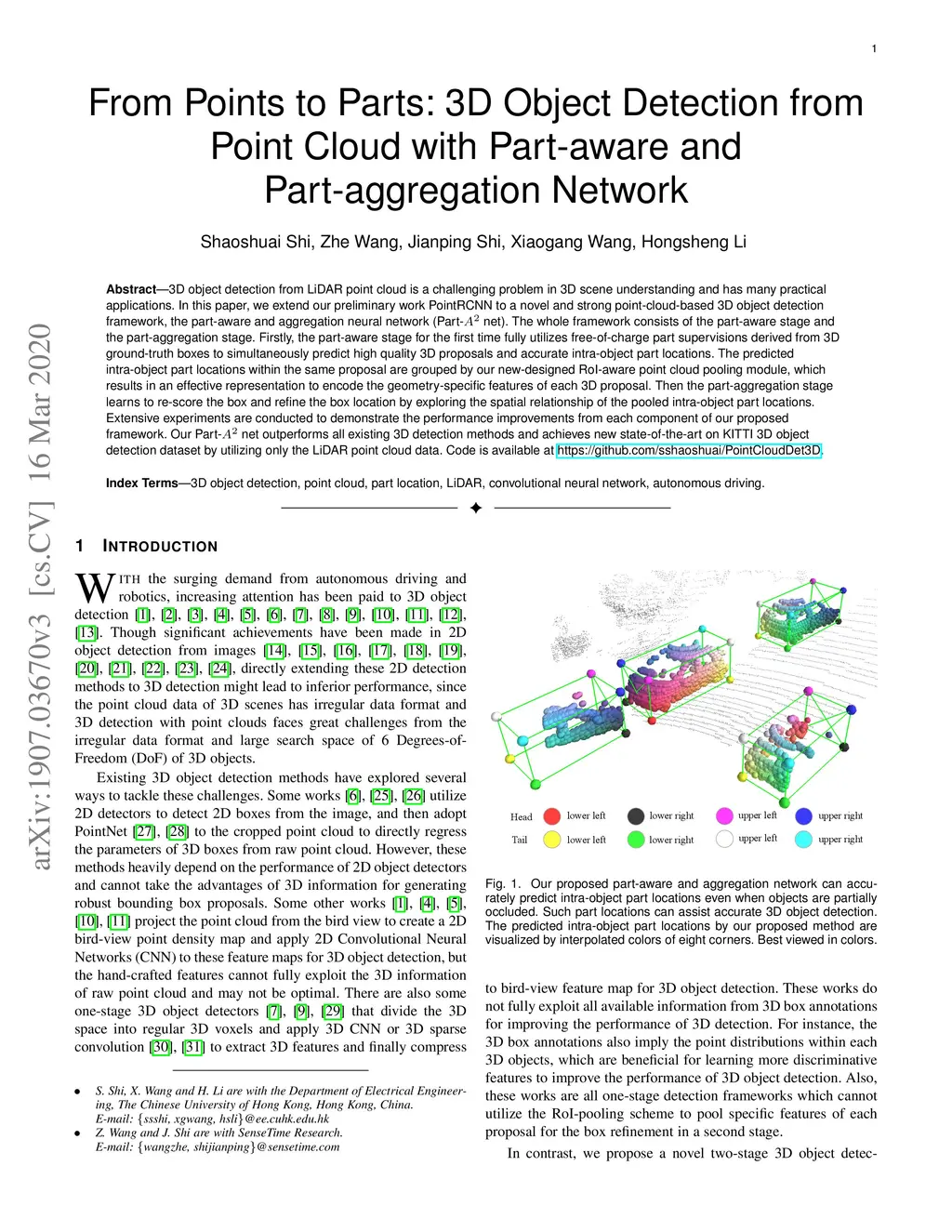 From Points to Parts: 3D Object Detection from Point Cloud with