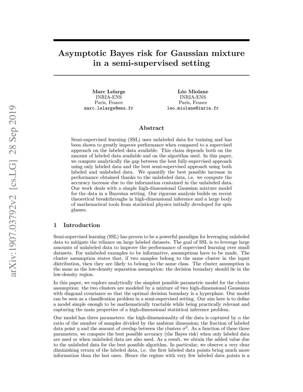 Asymptotic Bayes risk for Gaussian mixture in a semi-supervised setting