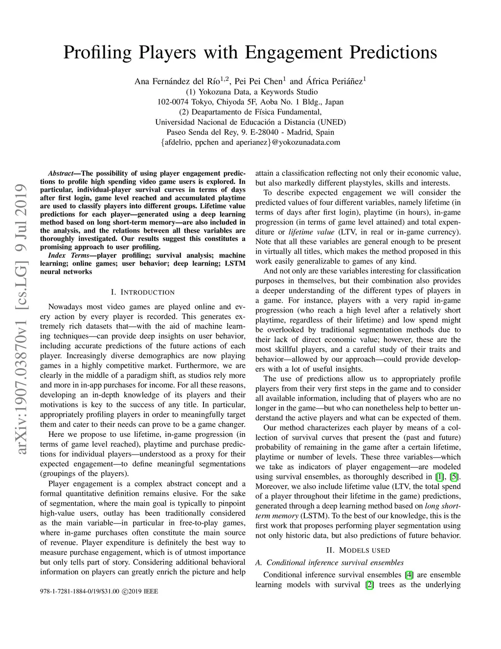 The possibility of using player engagement predictions to profile high spending video game users is explored. In particular, individual-player survival curves in terms of days after first login, game level reached and accumulated playtime are used to classify players into different groups. Lifetime value predictions for each player---generated using a deep learning method based on long short-term memory---are also included in the analysis, and the relations between all these variables are thoroughly investigated. Our results suggest this constitutes a promising approach to user profiling.