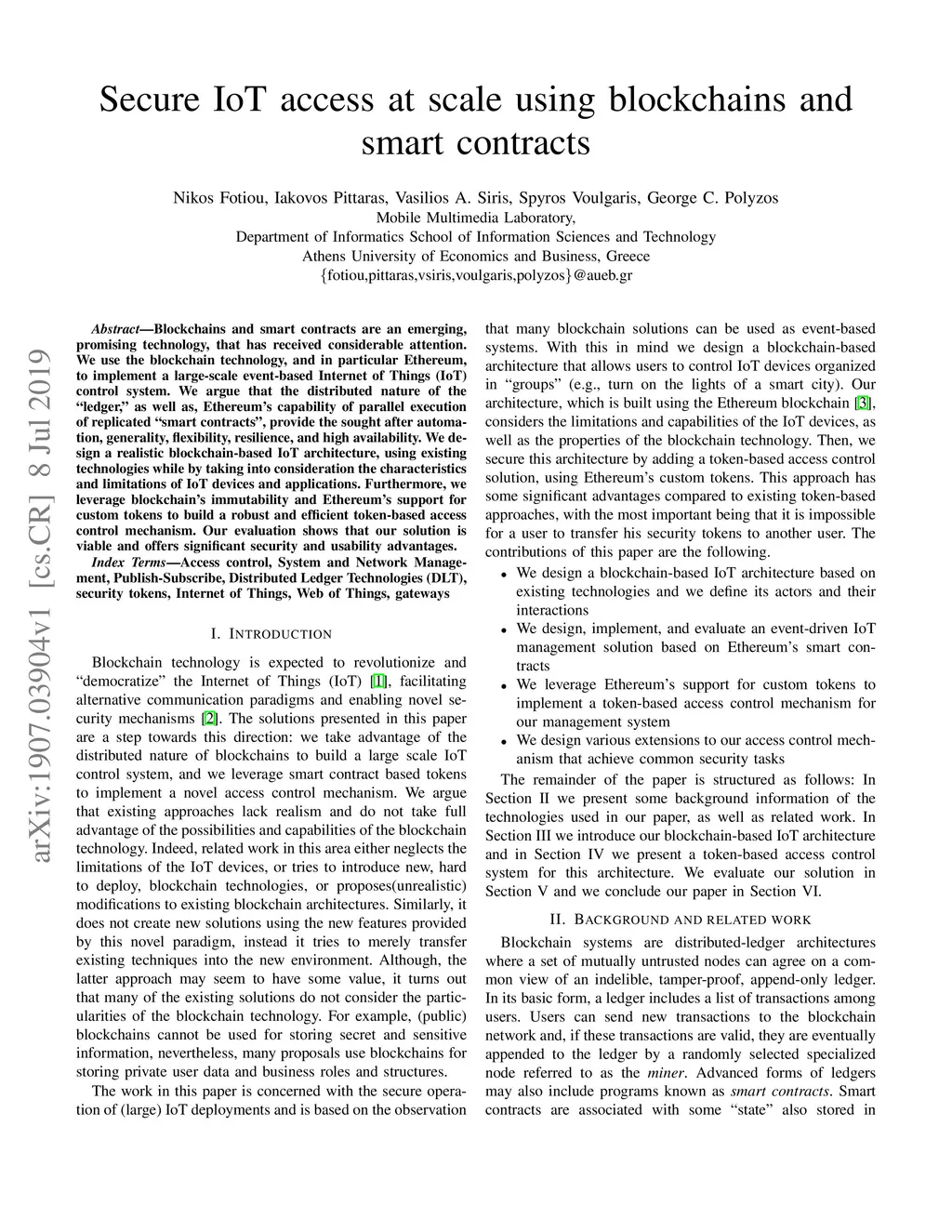 Secure IoT access at scale using blockchains and smart contracts