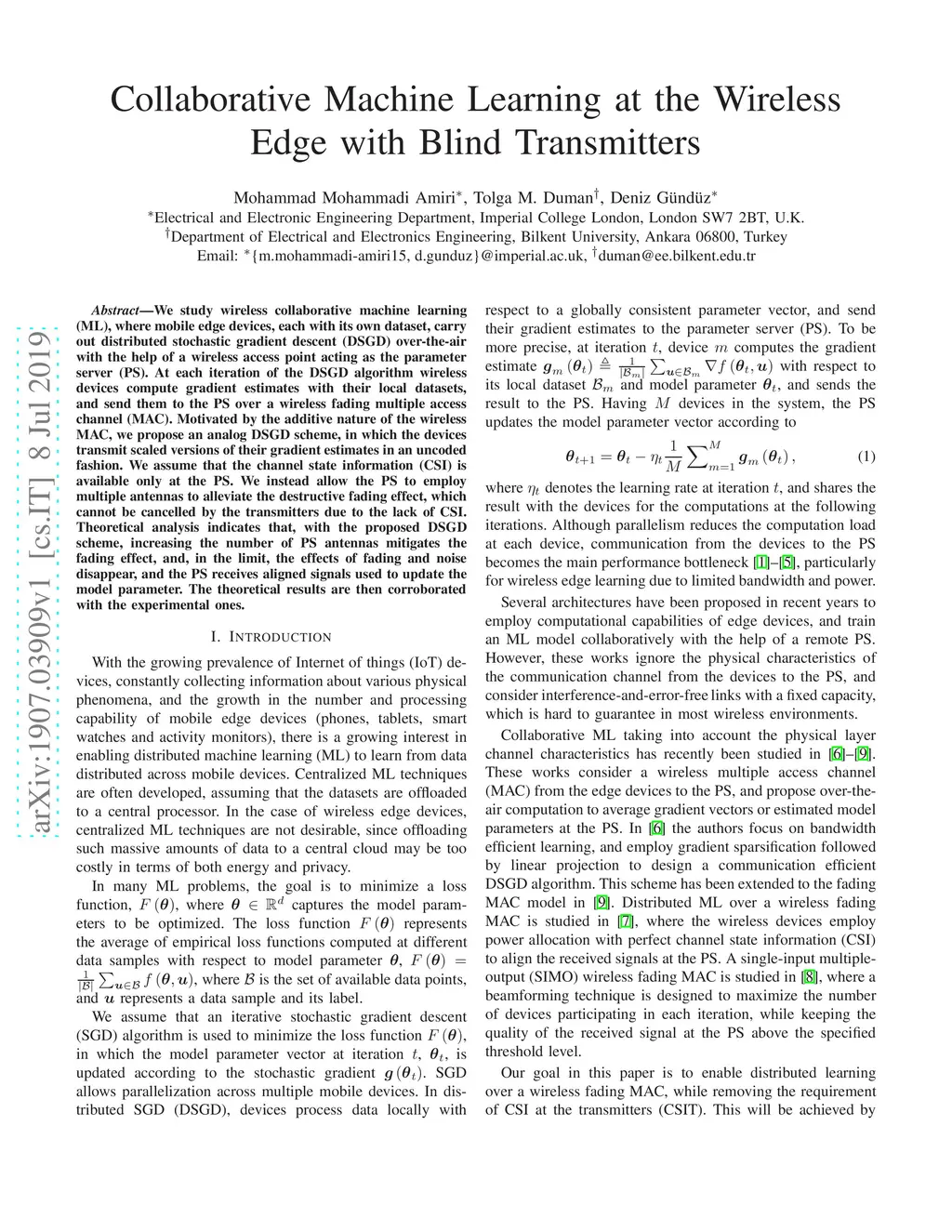 Collaborative Machine Learning at the Wireless Edge with Blind