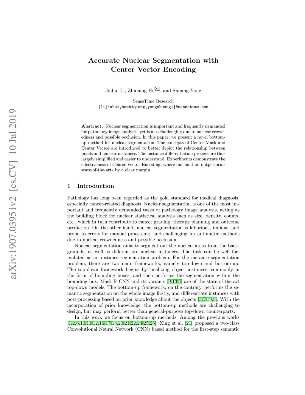 Accurate Nuclear Segmentation with Center Vector Encoding