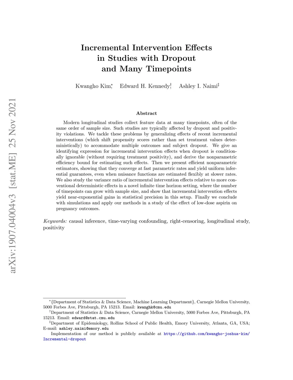 Incremental Intervention Effects in Studies with Dropout and Many