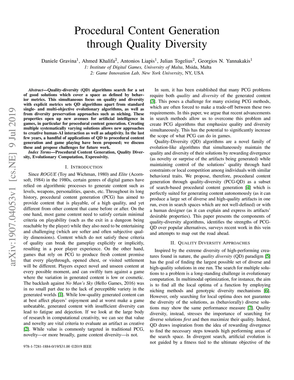 Quality-diversity (QD) algorithms search for a set of good solutions which cover a space as defined by behavior metrics. This simultaneous focus on quality and diversity with explicit metrics sets QD algorithms apart from standard single- and multi-objective evolutionary algorithms, as well as from diversity preservation approaches such as niching. These properties open up new avenues for artificial intelligence in games, in particular for procedural content generation. Creating multiple systematically varying solutions allows new approaches to creative human-AI interaction as well as adaptivity. In the last few years, a handful of applications of QD to procedural content generation and game playing have been proposed; we discuss these and propose challenges for future work.