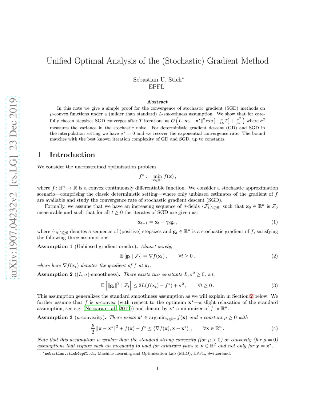 Unified Optimal Analysis of the (Stochastic) Gradient Method