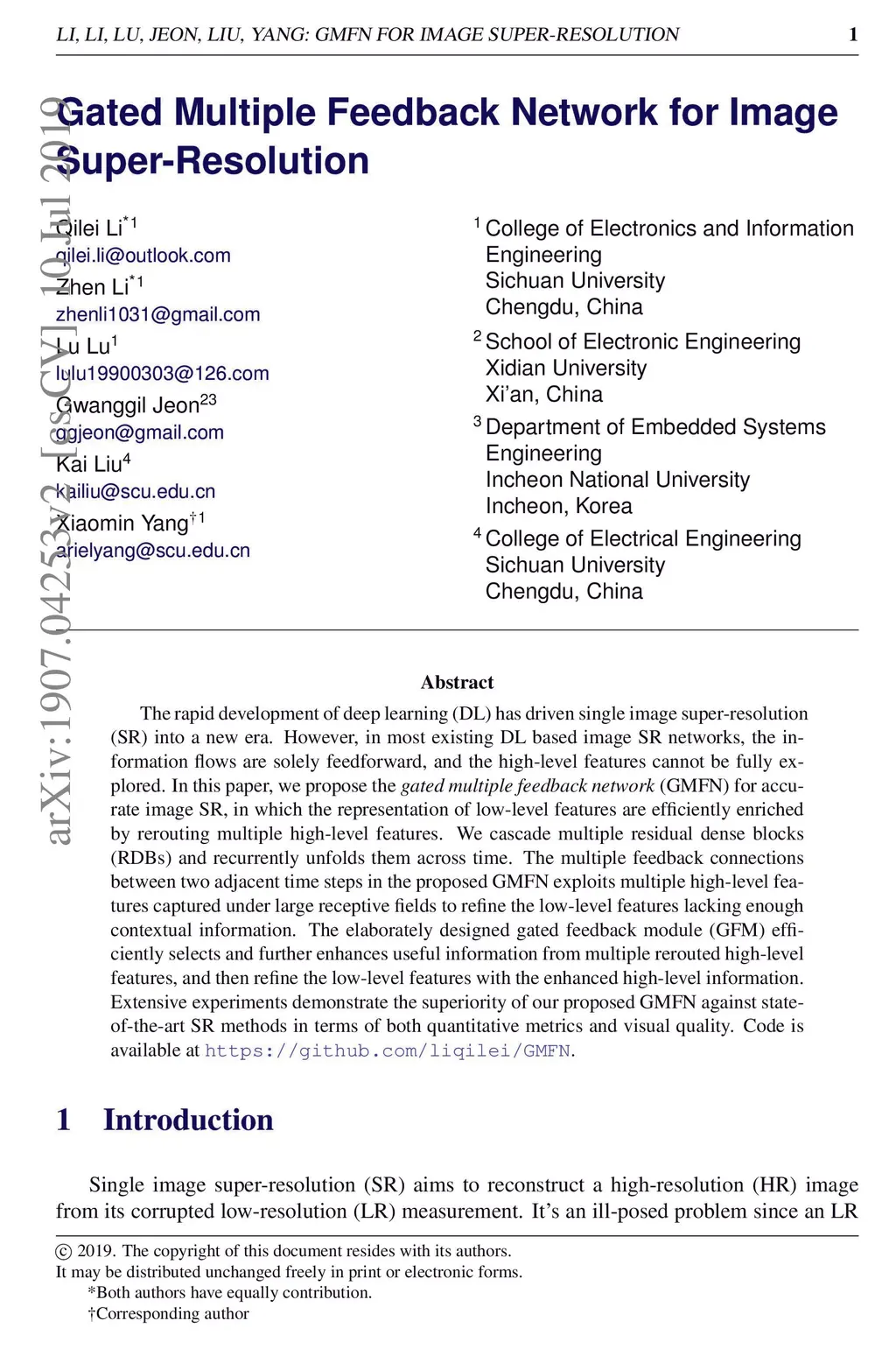 Gated Multiple Feedback Network for Image Super-Resolution
