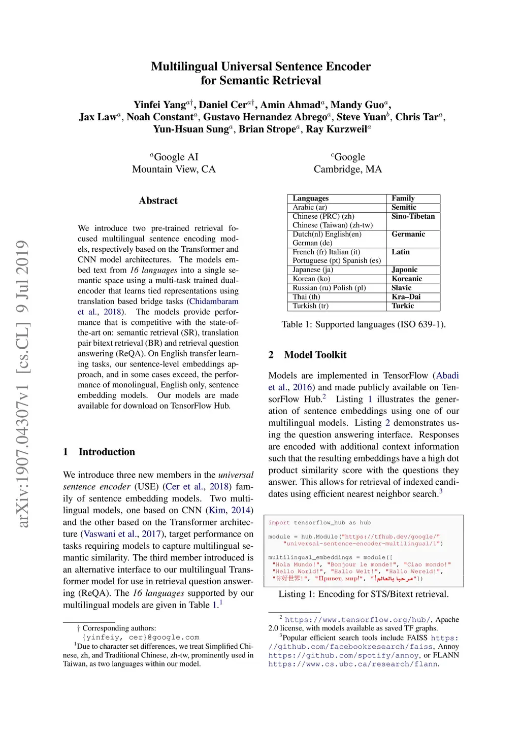 Multilingual Universal Sentence Encoder for Semantic Retrieval